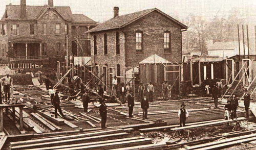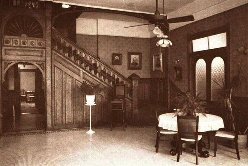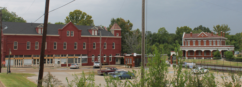 The focal point of the Ginocchio Historic District, the Ginocchio Hotel, was built and designed by C.G. Lancaster in 1896 for Charles A. Ginocchio. The establishment of the railroad in Marshall resulted in rapid growth within the county and became a hub for transportation, replacing the riverboat transportation in Jefferson. After the Texas and Pacific Railroad relocated its main shops from Hallsville to Marshall in 1873 and expanded its lines, many people moved into the surrounding area hoping to achieve financial success in the newly rising economy. One such person was Charles Ginocchio, an Italian immigrant who came to Harrison County specifically because of the railroad. He and his family arrived to Marshall in 1871 and by 1886 he owned all of the property adjacent to the intersection of North Washington and the right of way of the Texas and Pacific Railway Company. (Harrison County Deed Records, Vol. 108, Pg. 150.) The Ginocchio Hotel was only one of many hotels and restaurants along the railroad line owned and operated by Charles, but it was considered the grandest.