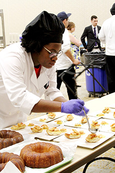 "This was a great catering experience for the students," Fickes said. "Students learned how to budget and modify a recipe for four people to feed 100. This is the fourth catering event the class has participated in this semester, so they were able to use their knowledge in a hands-on experience."