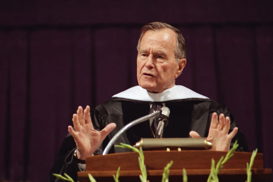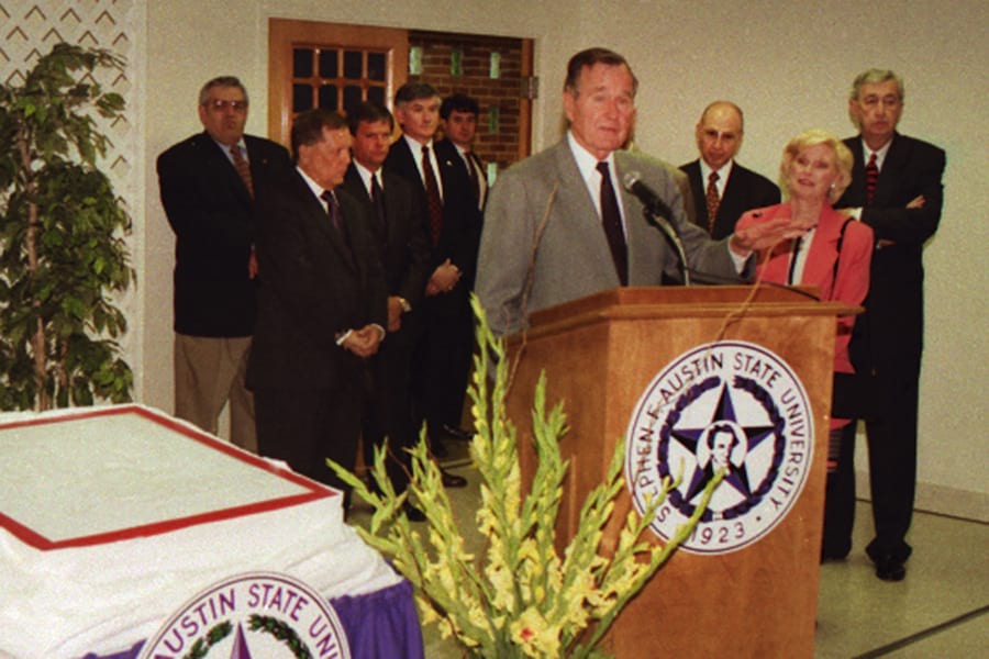 Remembering former President George H.W. Bush and extending deepest condolences to his family, the university looks back at the contributions he made to SFA.