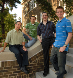 SFA Associate Professor Stephen Lias (left) and three of his students have all recently been honored for musical compositions they have written within the past year. Pictured with Lias, from left, are Lufkin senior Aden K. Ramsey, Lufkin graduate student Garry Wickliffe and Dallas sophomore Russell Cannon.NACOGDOCHES, TEXAS - "Steak-worthy" is what Dr. Stephen Lias calls the most recent honors bestowed upon three of his composition students.