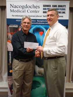 Dr. Tim King (left) and Gary StokesThe Tenet Foundation helped to sponsor the Stephen F. Austin State University School of Music's performance of George Frideric Handel's "Messiah." Dr. Tim King, SFA professor of music pictured at left, directed SFA's combined choirs, Symphony Orchestra and Nacogdoches Community Chorus, including hundreds of students, faculty and community members, in part 1 of "Messiah," popularly known as "the Christmas portion," and the famous "Hallelujah Chorus." Pictured with King is Gary Stokes, Nacogdoches Medical Center chief executive officer.