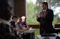 Dr. Michael Tkacik, the new director of the School of Honors at Stephen F. Austin State University, speaks to students during a class. Tkacik will continue to teach while serving in his new role as director.Dr. Michael Tkacik considers himself very lucky. His dream job just became his real job.