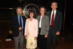 Retiring FacultyRetiring faculty members were recently honored at Stephen F. Austin State University. Pictured are, from left, Tomy Matthys, theatre; Ann Doyle-Anderson, modern languages; and Gail Leslie and Craig Wood, computer science. Retirees not pictured are Scott Beasley, forestry; Barbara Carr, English; Joyce Hoffman, management; Thomas Houston, music; Michael Legg, forestry; and Thomas Wheeler, graduate studies.