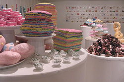 According to Meyers' Web site, http://mindysuemeyers.blogspot.com/, the sculptural sweets and pastries she makes from fabric and household objects explore themes related to indulgence, temptation, comfort and security.