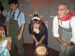 SFA theatre students cast in "Schoolhouse Rock Live! Too" greet young audience members after the performance. The children's musical is one three shows being presented during the SFA School of Theatre's Summer Repertory season that continues through Saturday, July 18. Pictured above, from left, are Jt Hearn, Emory sophomore; Caroline Harrell, Athens sophomore; and Austin Chason, Spring senior.NACOGDOCHES, TEXAS - East Texans who wish to see any or all three of the theatrical productions included in Stephen F. Austin State University School of Theatre's Summer Repertory season still have two weeks to do so.