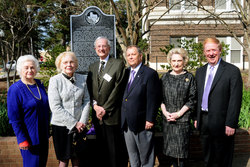 Pictured from left, Joyce Swearingen, Dr. Edwin C. and Betty Boynton; Dr. Baker Pattillo, Peggy Wedgeworth Wright, and Joe Max Green.A historical marker honoring the contributions of Dr. Paul Lewis Boynton to Stephen F. Austin State University was dedicated Tuesday in the Founders Plaza between the Austin and Rusk buildings on the campus. Boynton served as SFA president from 1942 to 1958 and is remembered for his ingenuity in keeping the school open during World War II by convincing the federal government to open a Women's Army Corps school on the campus. When the war ended and enrollment surged, Boynton continued to lay the groundwork for the college's ascension to university status. Pictured are, from left, Joyce Swearingen, who served as editor of SFA's Stone Fort Yearbook when Boynton was president; Boynton's son and daughter-in-law, Dr. Edwin C. and Betty Boynton; Dr. Baker Pattillo, SFA president; Peggy Wedgeworth Wright, former chair of the Board of Regents; and Joe Max Green, chair of the Board of Regents.
