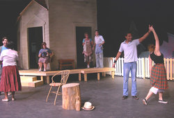 The cast of "Picnic" rehearses a scene in front of one of the last two sets SFA Associate Professor Tomy Matthys has designed for the university. Matthys will retire this summer after 44 years and over 400 theatrical productions at SFA. Patrons attending Friday and Saturday's productions of "Picnic" in W.M. Turner Auditorium can view over 20 of his scenic design models that will be on display in the lobby. Friday's performance is at 7:30 p.m., and Saturday's is at 2 p.m.NACOGDOCHES, TEXAS - Patrons who attend Friday and Saturday's productions of William Inge's "Picnic" by the SFA School of Theatre will have access to a unique display in the lobby of the Griffith Fine Arts Building.