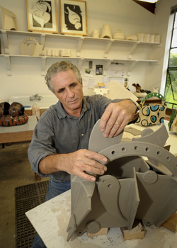Piero Fenci, SFA professor of ceramics, works in his studio on one of the pieces included in "La Cerca," a solo exhibition that will open Thursday, July 15, in Chihuahua City, Chihuahua, Mexico.NACOGDOCHES, TEXAS - Piero Fenci, professor of ceramics at Stephen F. Austin State University, has plenty of reasons to be excited about "La Cerca," his solo show that will open Thursday, July 15, at the state museum in Chihuahua City, Chihuahua, Mexico.
