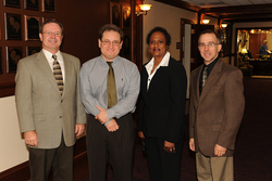 Four faculty members at Stephen F. Austin State University recently were promoted to the highest academic rank of professor by the Board of Regents. Pictured from left are Keaton Grubbs of the Department of General Business, David Lewis of the School of Art, Julia Ballenger of the Department of Secondary Education and Educational Leadership, and Stephen Lias of the School of Music.