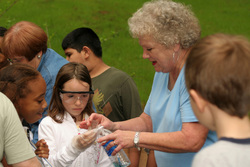 Marybeth Hagood checks water quality at the SFA Pineywoods Native Plant Center with local elementary school students.The Mast Arboretum at Stephen F. Austin State University will host a Garden Guide training class beginning with an orientation session from 9:30 to 11:30 a.m. Jan. 19 at the Pineywoods Native Plant Center, 2900 Raguet St. The class prepares volunteers to give guided tours of the SFA Mast Arboretum and Pineywoods Native Plant Center. Garden Guides introduce small groups of students to the gardens through hands-on activities that might involve exploring the inside of a flower, learning about honeybee communication, taking a closer look at soil or forest habitats, or measuring a tree. According to Elyce Rodewald, education coordinator for the gardens, advanced horticulture knowledge is not necessary, but a love and appreciation for energetic, curious children is. Training classes will be held Jan. 20-21 and Jan. 27-28 from 9:30-11:30 a.m. at the center. To register for the class, or for more information, contact Rodewald at (936) 468-1832 or by e-mail at erodewald@sfasu.edu. SFA Gardens volunteer Marybeth Hagood, pictured, checks water quality at the SFA Pineywoods Native Plant Center with local elementary school students.