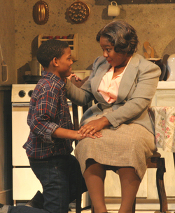Red Oak sophomore Sharayah Reed and Nacogdoches High School freshman Devin Bruton rehearse a scene from the SFA School of Theatre's production of "A Raisin in the Sun."Red Oak sophomore Sharayah Reed and Nacogdoches High School freshman Devin Bruton rehearse a scene from the SFA School of Theatre's production of "A Raisin in the Sun." In this pivotal scene, Reed's character, Lena Younger, tells her grandson, Travis, that she is buying the family a new house. Professor Allen Oster directs the play by Lorraine Hansberry that is set in the 1950s on the South Side of Chicago and focuses on the dreams every member of the Younger family is struggling to attain. The play is being presented at 7:30 p.m. tonight through Saturday, March 6, in W.M. Turner Auditorium as part of the SFA College of Fine Arts' University Series. Tickets are $18 for adults, $12 for seniors and $6 for students and youth. For tickets or more information, please visit www.finearts.sfasu.edu or call (936) 468-6407 or (888) 240-ARTS.