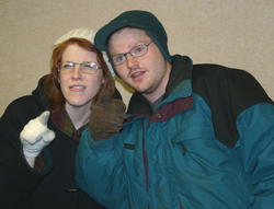 Cast members from the SFA School of Theatre's upcoming production of John Cariani's "Almost, Maine" rehearse a scene in which a couple struggles to locate the same star on which to make a wish. Pictured here are Dallas senior Margaret Lewis and Houston sophomore Kurt Bilanoski. The play will be presented in W.M. Turner Auditorium at 7:30 p.m. Tuesday, Oct. 5, through Saturday, Oct. 9.NACOGDOCHES, TEXAS - As the Stephen F. Austin State University School of Theatre prepares for its Oct. 5 opening of "Almost, Maine," it joins theaters across the country and abroad that are presenting John Cariani's new romantic comedy.