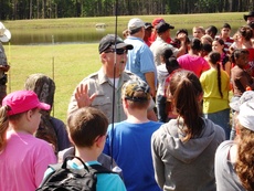 The Rev. Rick Russell helped present information to San Augustine and Broaddus students regarding casting, conservation, rigging, fish identification and safety. More than 80 fifth graders participated in the event at the Piney Woods Conservation Center on Sam Rayburn Reservoir.More than 80 fifth-graders from San Augustine and Broaddus participated in the first KidFish Program on April 8 at Stephen F. Austin State University's Piney Woods Conservation Center located in the Powelltown area.