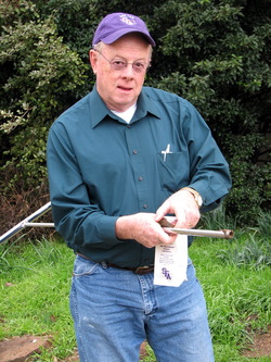 SFA professor Dr. Leon Young collects a soil sample core from a landscape for soil testing at the SFASU Soil Plant & Water Analysis Lab. Dr. Young will present a program on soil testing and using limestone and fertilizers in gardens and lawns. Emphasis will be on liming materials.A successful garden begins with good soil. SFA agriculture professor Dr. Leon Young will present Soils in Your Garden on February 3 from 6:30-8:30 pm in room 110 of the Agriculture Building on Wilson Drive. Dr. Young, aka Dr. Red Dirt, will discuss the basics of soil-pH, use of lime, fertilization and soil testing. Dr. Young encourages participants to bring their soil questions for a question/answer and problem-solving session at the close of the presentation. Cost is $5.00 per person.