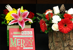 Examples of floral designs created by SFA floriculture students. Similar designs will be on exhibit and available for purchase during a silent auction from 10 a.m. to 4 p.m. Thursday, Dec. 8, in the Agriculture Building, Room 110, at 1924 Wilson Drive.Floral designs created by a floriculture class at Stephen F. Austin State University will be on exhibit and available for purchase during a silent auction from 10 a.m. to 4 p.m. Thursday, Dec. 8, in the Agriculture Building, Room 110, at 1924 Wilson Drive.