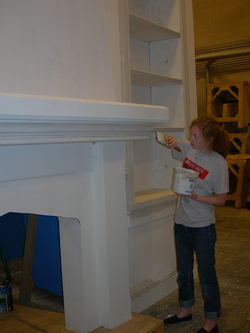 Houston junior Amelia Fultz applies a coat of primer to the set being built for the SFA School of Theatre's upcoming production of Tim Kelly's "The Uninvited." The classic ghost story will open at 7:30 p.m. Wednesday, June 29, in W.M. Turner Auditorium and run in repertory fashion with "Schoolhouse Rock Live!" through mid-July.NACOGDOCHES, TEXAS - Inexplicable movement, lights, sounds and even smells suggest the presence of a an unwelcome "guest" in Tim Kelly's "The Uninvited," which the Stephen F. Austin State University School of Theatre will open at 7:30 p.m. Wednesday, June 29, in W.M. Turner Auditorium as part of its summer theatre season.