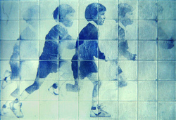 The glass tiled murals included in "Rufus Butler Seder: LIFETILES," currently on exhibit at The Cole Art Center @ The Old Opera House in downtown Nacogdoches, seemingly come to life as viewers pass by. Shown here is "Running Boy." The show closes Saturday, March 26.NACOGDOCHES, TEXAS - Although the majority of the college students have left town and faculty are enjoying some time off, Stephen F. Austin State University's downtown art gallery will maintain its regular hours during spring break.