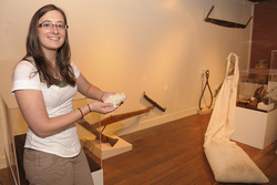 Cassandra Bennett of SFA's Stone Fort Museum holds cotton that is part of a new exhibit set to open later this month. The cotton is part of a collection of farming implements included in the exhibit called "Cornerstones of the Community: African American History in Eastern Texas." The public is invited to attend the opening of the exhibit at 4 p.m. Saturday, June 25.NACOGDOCHES, Texas - A story quilt, lovingly stitched by a mother and her two daughters in the early 20th century, is included in a new exhibit opening this month at the Stone Fort Museum at Stephen F. Austin State University.