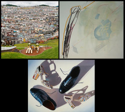 Top (from left to right): First Place - inject print "Garden of Earthly Delights" by Eric Tomberlin of Weaverville, N.C.; Third Place - mixed media on canvase "Untitled 3-2" by Michael Blair of Denton; Bottom: Second Place - oil on linen "Portrait of a Romance" by Elizabeth Barlow of San Francisco.NACOGDOCHES, TEXAS - At the April 14 opening of "Texas National 2012," juror Dave Hickey announced the winners of the annual exhibition presented by the Stephen F. Austin State University School of Art.