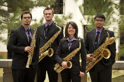 Four SFA saxophone students will compete against other top quartets and/or soloists at the North American Saxophone Alliance competitions in Tempe, Ariz. March 15 through 18. Pictured, from left, are Brownsville graduate student Robert Palermo; Lufkin graduate student Matt Mahaffey; Lake Mary, Fla., senior Elena Pedersen; and Harker Heights graduate student Alvin Eclavea.NACOGDOCHES, TEXAS - Four Stephen F. Austin State University saxophone students will be traveling to Tempe, Ariz., March 15 through 18 to compete in the North American Saxophone Alliance quartet and/or solo competitions.