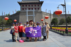 Stephen F. Austin State University students recently participated in a study-abroad program in China led by SFA faculty members. Pictured at the Xi'an City Wall are, from left, Dr. Yanli Zhang, assistant professor of forestry; Amy Williams, Dr. Cathy Amonett, Amanda Smith, Holly McCanlies; Monique Nunn; Dr. Cindy Lindley; Dr. Donna Porter; Dr. Judy Abbott, dean of SFA's James I. Perkins College of Education; Michele Reed; Dr. Karen Embry Jenlink, professor of secondary education and educational leadership; Paula Griffin; and Shirley Luna. Not pictured is doctoral student Denise McCormick Myers.Stephen F. Austin State University students studying in the James I. Perkins College of Education doctoral program in educational leadership recently participated in a study-abroad program in China.