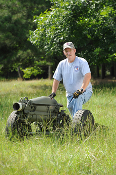 Garbed in red T-shirts and camouflage pants, the Lumberjack Battalion's Cannon Crew is responsible for loading and firing Ol' Cotton with every SFA touchdown, extra point and field goal. But a lot of sweat and elbow grease is needed to get Ol' Cotton ready for action each summer, and those duties fall to Ret. Lt. Col. John D. "Mad Dog" Mosele '74. The retired U.S. Army officer and Austin Raider emeritus has a soft spot for the historic piece of artillery, which was acquired by the ROTC program during his time at SFA.