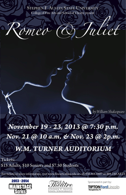 Romeo and JulietNACOGDOCHES - An upcoming Stephen F. Austin State University School of Theatre production of "Romeo and Juliet" may be especially inviting for area high school students who are engaged in a classroom study of this classic written by William Shakespeare.