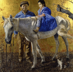 "For Cobb, saints are defined in the everyday - the ordinary person on the street, the neighbor, the relative who lives in quietude in an ever steady, abiding faith," Handley said. "They appear like ancient icons with their luminous gold leaf backgrounds, but the faces that gaze back at us are not Byzantine; rather they appear familiar, like somebody we know or have met at one time."
