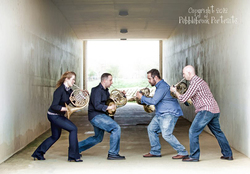 The group features Paul Blackstone, who is pursuing a Doctorate of Musical Arts degree in horn from the University of Texas; Audrey Good, second horn of the Toronto Symphony Orchestra; Tony Licata, a founding member of the Four Hornsmen and stationed at Fort Hood, Texas, where he performs with 1st Cavalry Division Band; and Gerald "Gerry" Wood, a freelance musician and private instructor in the Dallas-Fort Worth area.