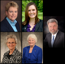 Top Row (left to right): Lou Ann Richardson and Amanda Williams Robbins; Bottom Row (left to right): Dr. Treba Marsh and Kathryn Robertson; Far Right: E. Russell "Rusty" Braziel.NACOGDOCHES, Texas - The Stephen F. Austin State University Alumni Association will honor five outstanding alumni at its annual awards banquet at 6 p.m. Friday, Sept. 12, in the Baker Pattillo Student Center's Twilight Ballroom.