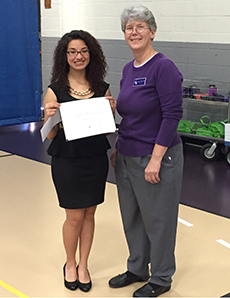Dr. Elizabeth Vaughan, chair of the Department of Elementary Education, presented Caryn Berkowitz with the Hilda M. Barfield Outstanding Interdisciplinary Studies Graduate Award.