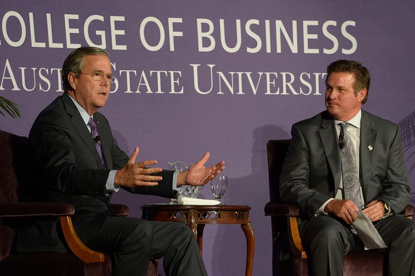NACOGDOCHES, Texas - A packed house greeted former Florida Gov. Jeb Bush this past week as he addressed Stephen F. Austin State University students, faculty and staff, and community members during the inaugural Nelson Rusche Distinguished Lecture Series on the university's campus.