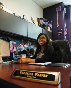 Veronica WeaverNACOGDOCHES, Texas - Sitting in a purple room with purple axe handles pinned above her desk, Veronica Weaver talks about her decade-long transition from student to orientation supervisor and, just this year, to head of the Stephen F. Austin State University Office of Multicultural Affairs.