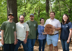 Dr. Jared Barnes, assistant professor of horticulture for Stephen F. Austin State University's Arthur Temple College of Forestry and Agriculture, is the recipient of the 2017 Keep Nacogdoches Beautiful Sustainability Award. The award recognizes community members who make a concerted effort to promote the role of sustainability throughout the Nacogdoches community. Pictured from left, horticulture students Chisolm Tessem, John Dilday and Colin Burke; Karen Barnes; Dr. Jared Barnes; and Jamie Bouldin, Keep Nacogdoches Beautiful board of directors' member.NACOGDOCHES, Texas - Dr. Jared Barnes, assistant professor of horticulture for Stephen F. Austin State University's Arthur Temple College of Forestry and Agriculture, received the 2017 Sustainability Award from Keep Nacogdoches Beautiful during the SFA Earth Day Celebration, April 1.