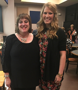 Mountainview Elementary School principal Melissa Pritchard, left, congratulates Stephen F. Austin State University alumna Ashlee Brewster on being named the 2016-17 Teacher of the Year. Brewster has taught second grade at Mountainview since August 2014.NACOGDOCHES, Texas - Ashlee Brewster, a 2013 Stephen F. Austin State University graduate, was named the 2016-17 Teacher of the Year for Mountainview Elementary School in Waco.