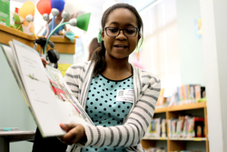 SFA Houston elementary education senior Kaelin Gray read Langston Hughes' poem "Dreams" to first graders.