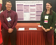 SFA doctoral student Ashley Doss and McCleary presented a study titled "Implications of the Impact of Parent Perceptions on Military Children," which was based on Doss' thesis. This presentation informed practitioners how parental perceptions of the military lifestyle may affect adolescents.