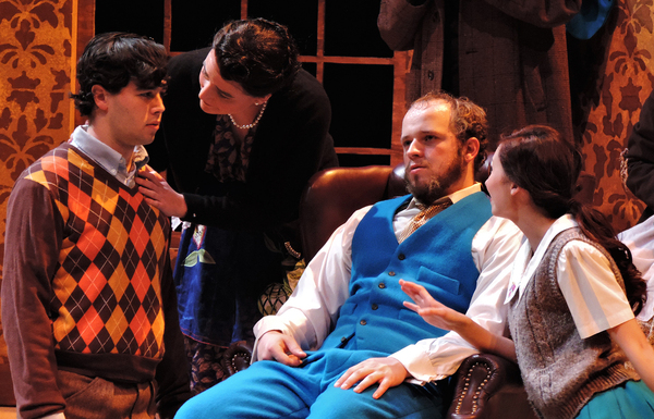 Stephen F. Austin State University theatre students, from left, Daniel Hicks, Richmond sophomore; Kara Bruntz, Southlake senior; Avery Tindol, Tenaha senior; and Sarah Lovelady, Leander sophomore, perform in a scene from Thornton Wilder's "The Skin of Our Teeth" being presented at 7:30 nightly through Saturday, April 29, in W.M. Turner Auditorium on the SFA campus. The play is about the Antrobus family, which narrowly escapes one disaster after another, from ancient times to the present, Single tickets are $15 for adult, $10 for senior and $7.50 for student/youth. For tickets or more information, call the SFA Fine Arts Box Office at (936) 468-6407 or visit www.theatre.sfasu.edu. Photo credit: Lane Davidson