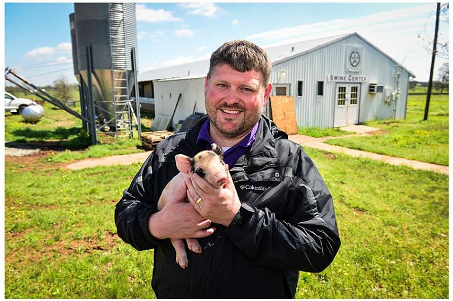 NACOGDOCHES, Texas — Visitors to Stephen F. Austin State University’s swine center won’t find Dr. John Mehaffey behind the desk of a typical professorial office space. More likely than not, they will have to pass through multiple doors following the intermingled sounds of student voices and contented pig grunts to locate him.