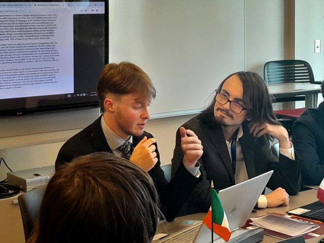 The simulation models the legislative bodies and administration of the European Union. Students use bargaining, negotiation, public speaking and diplomacy skills to pass legislation. In most legislative bodies of the EU, a unanimous vote or a weighted majority is needed. Students addressed issues such as climate change, immigration and asylum, the Russian-Ukrainian war, artificial intelligence regulation, and the Israel-Hamas war.
