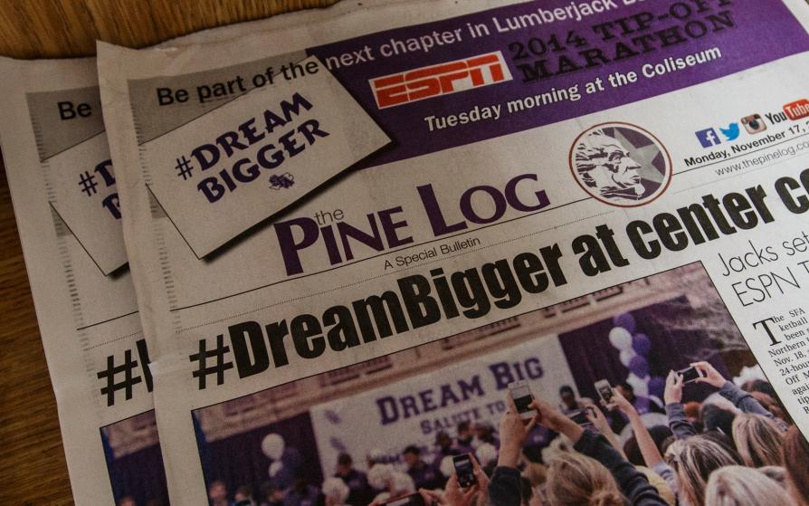 The Pine Log is SFA’s award-winning, independent, free online newspaper. The student staff is committed to providing the campus community with fair and balanced coverage of university and local news and sports as well as informed opinion pieces, including columns and editorials.