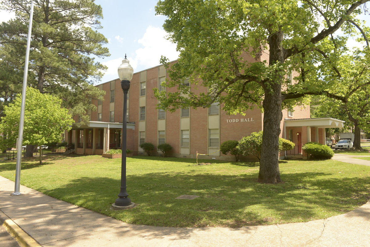 Two different buildings were named Todd Hall. The first was an all-male dormitory constructed in 1953 and built under the stands of Memorial Stadium. The second facility, which is the Todd Hall being razed, was built in 1962 as an all-female hall. It was later converted to an all-male facility and then back to all-female in 1986.