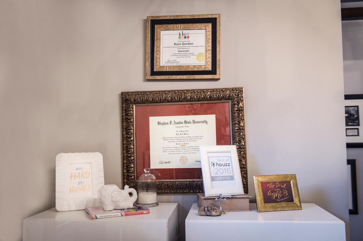 “Seeking an interior designer is scary because you don’t know what to expect,” Austin said while standing in the redesigned foyer of her Grapevine home. “I didn’t know if she was out of my budget or what to expect because I’ve never done anything like this before. But thankfully, Kara came in, I told her my budget, and she made it work.”