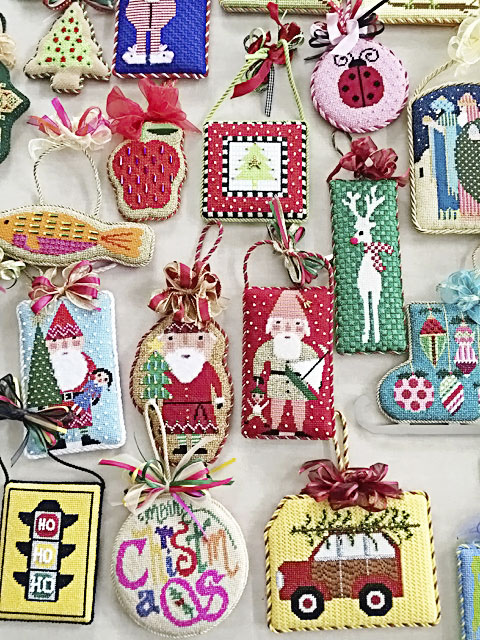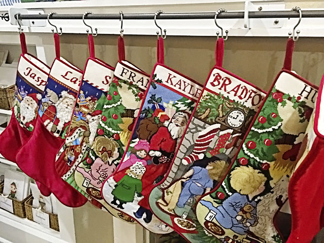 Directly across the street sits the shop’s workroom, where many distinctive items made from needlepoint are assembled, including pillows, holiday stockings and decorative ornaments.