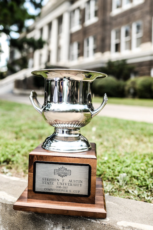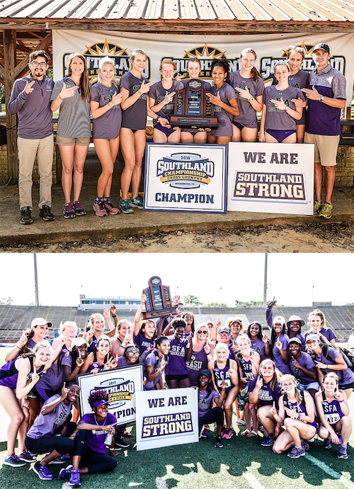 SFA added a pair of championships to its total in 2016-17. The women’s cross-country team took home the Southland Conference championship trophy last fall followed by the women’s outdoor track and field team. With the two championships, SFA upped its total to 87 SLC titles, ranking second all-time.