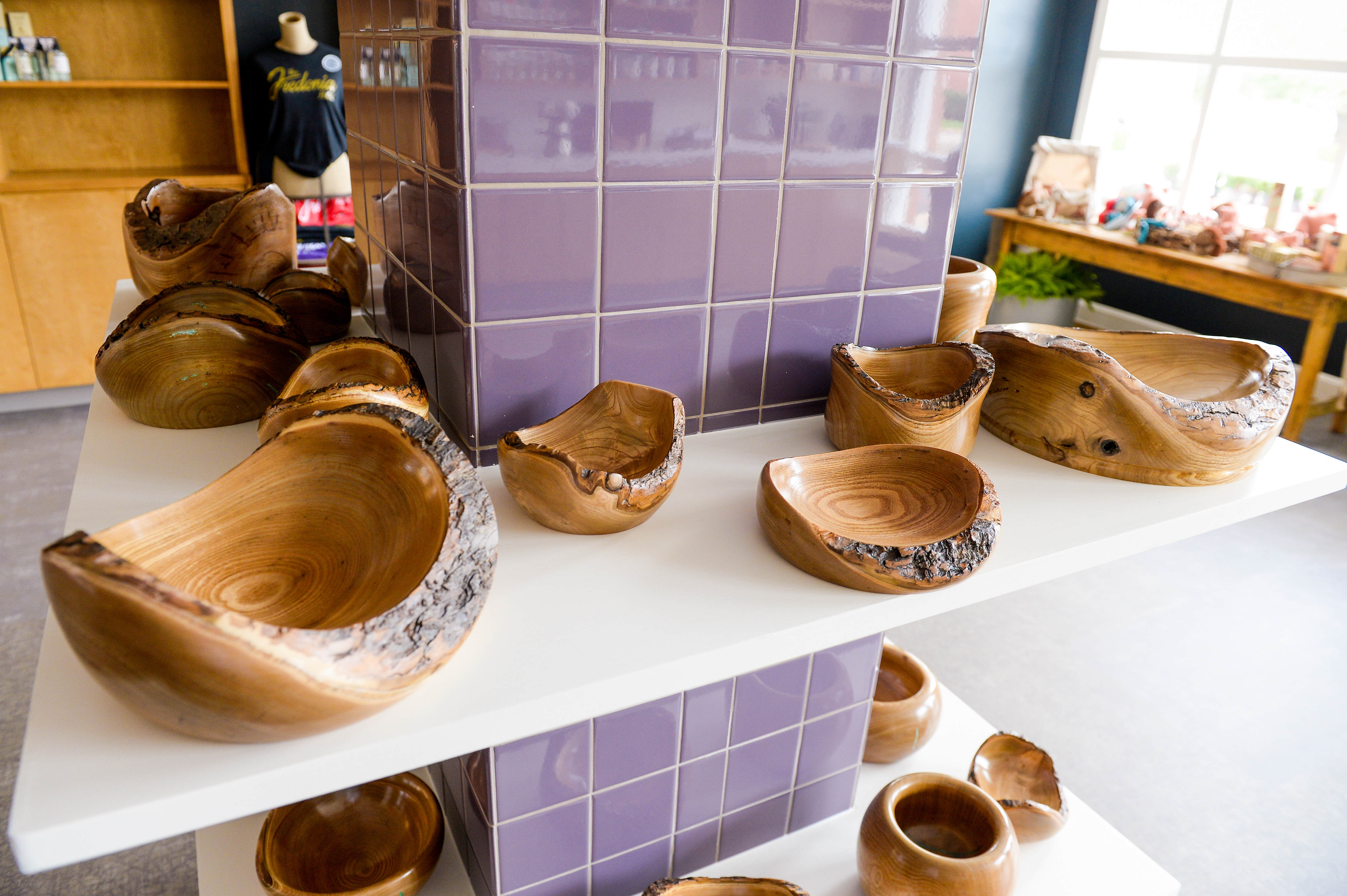 A new gift shop showcases a variety of novelty items, such as bowls carved from a catalpa tree that once stood by the hotel’s duck pond. The Nine Flags Bar also houses wooden tabletops made from a pecan tree that grew on the hotel’s property.