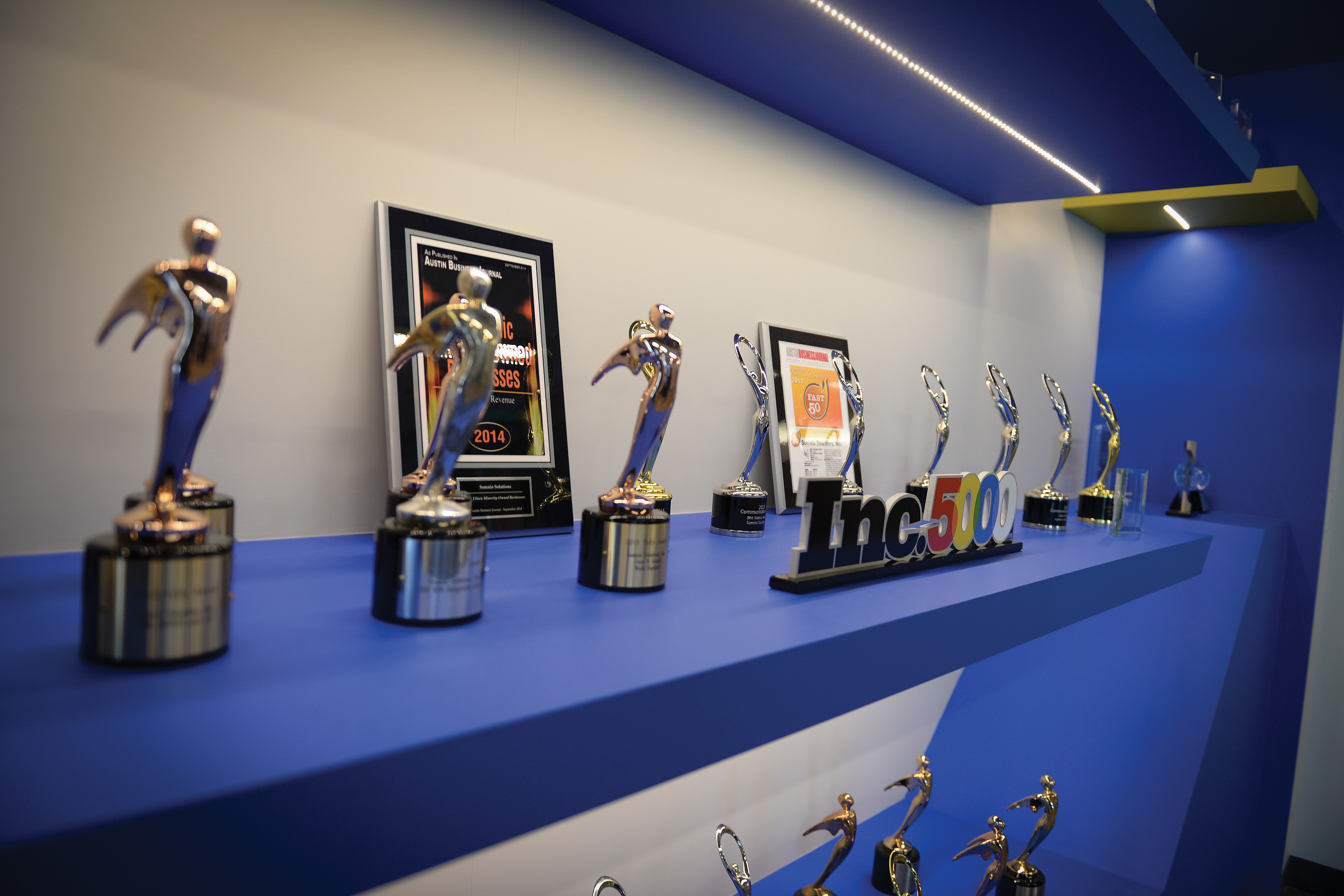 When you first walk in to Somnio’s glossy, cement-floored office, you’re greeted by state-of-the-art technology that boasts just some of Somnio’s capabilities. To the right of the entry door are shelves upon shelves of awards and recognitions that are a testament to Somnio’s continuing success.