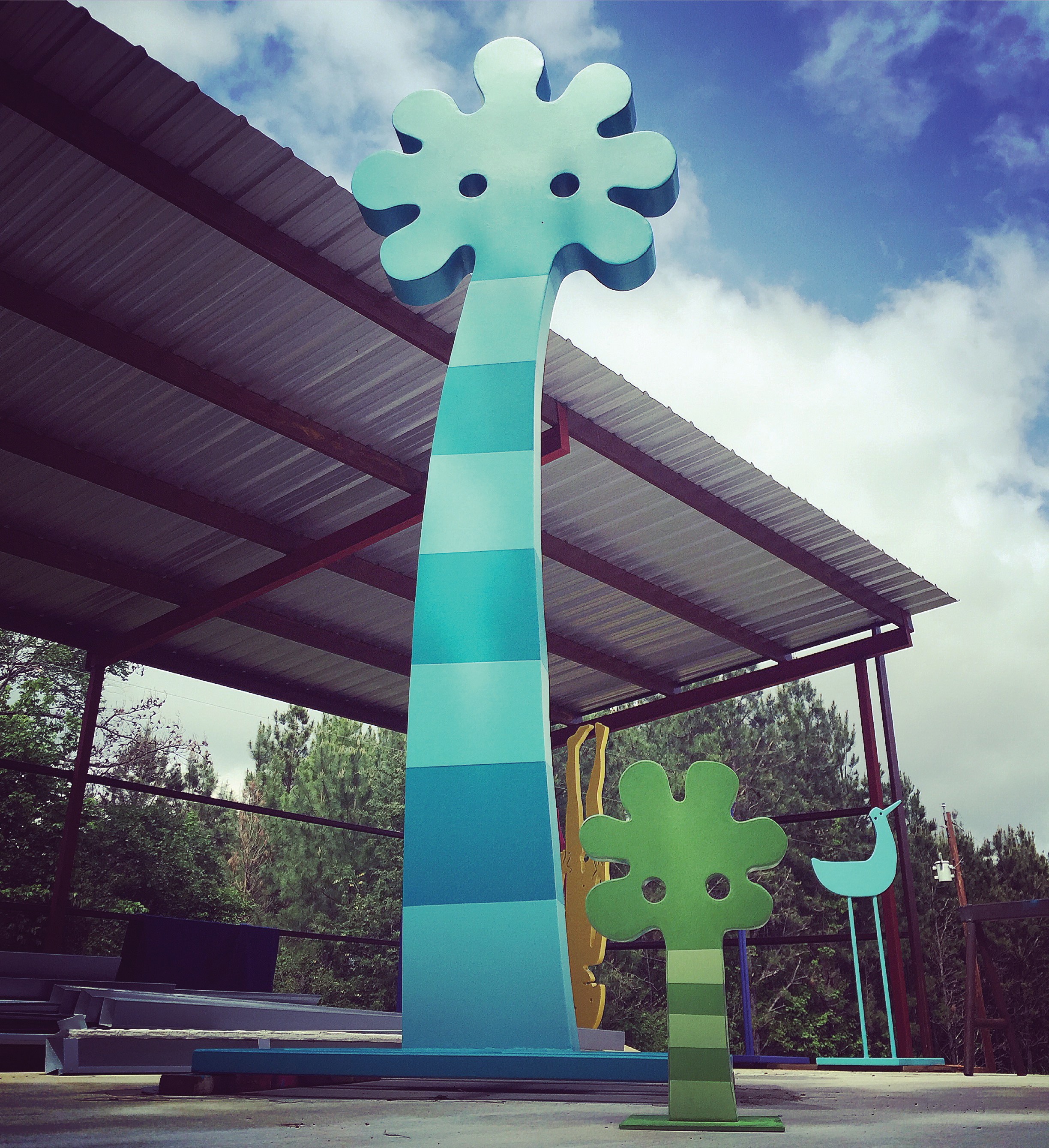 From the drawings come the colorful and massive steel sculptures. “The drawings are free and joy-filled play,” he said. “Steel is up there, but steel is hard work, and we have a love-hate relationship with hard work.”