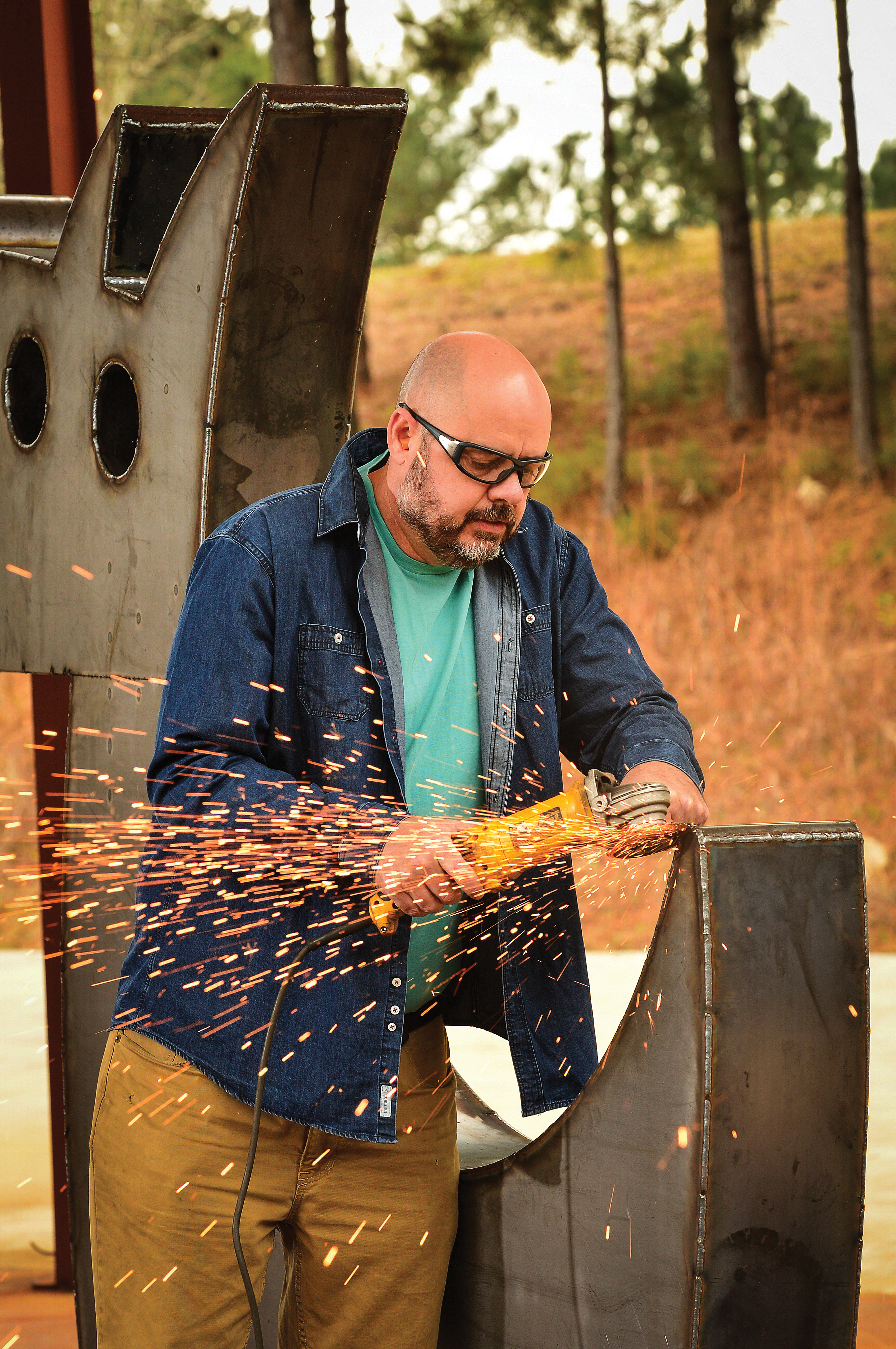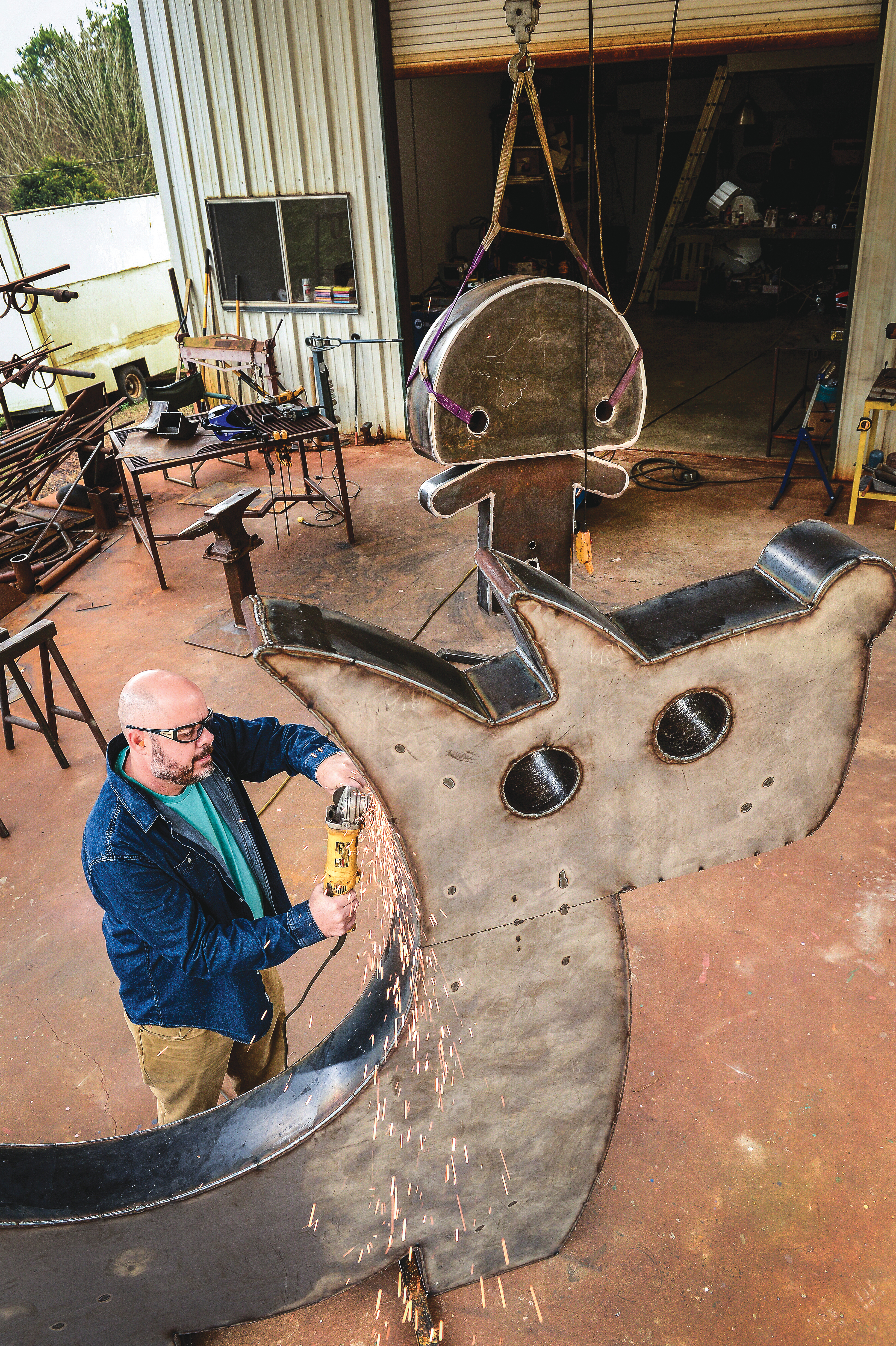 “I teach, so I’m floating back and forth all the time,” he said. “On the non-teaching days, I have the best intentions to hit the studio early and draw a bit, then get my assistant going once he arrives, then on to welding and grinding or bending. If it’s too hot or cold in the afternoon, I do computer design or proposals. On teaching days, I sneak in work at school or sometimes draw alongside students. I do half days at the university two days a week, so it’s a delicate dance. I think it’s great for my students to see that I’m an active, working artist.”