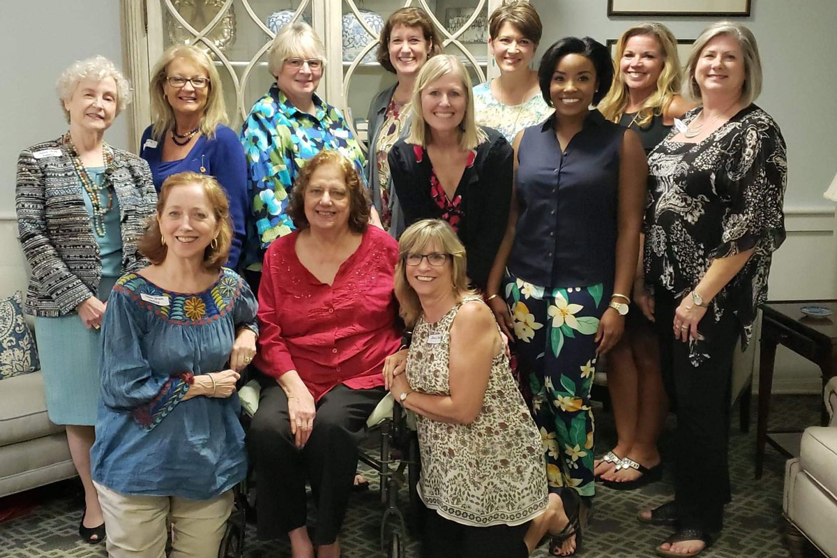 Christine Crain of Nacogdoches (seated in red shirt) served as the first advisor of the SFA Delta Delta Delta Chapter from 1972-87. After Crain’s retirement, members of Tri Delta established a scholarship in her honor to benefit a fellow sorority member. On Sept. 17, 2018, several Tri Delta sorority alumnae returned to the Tri Delta house in Nacogdoches to recognize and award the scholarship to its first recipient, nursing student Grace Krull of Allen, and celebrate this milestone with Crain.